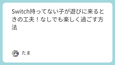 子ども Switch持ってない子が遊びに来るときの工夫!なしでも楽しく過ごす方法 近年、子どもたちの遊びの中心はNintendo Switchなどのゲーム機になっています。そのため、「Switchを持っていない子が遊びに来たとき、どうすればいいの?」と悩む家庭も少なくありません。実... 2025.10.18 子ども