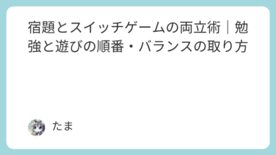 子ども 宿題とスイッチゲームの両立術|勉強と遊びの順番・バランスの取り方 子どもが学校から帰ってくると、宿題より先にスイッチの電源を入れてしまう――そんな光景は多くの家庭で見られます。「勉強と遊び、どうバランスを取ればいいのか」「宿題を後回しにせずにゲームを楽しませるには?... 2025.10.20 子ども