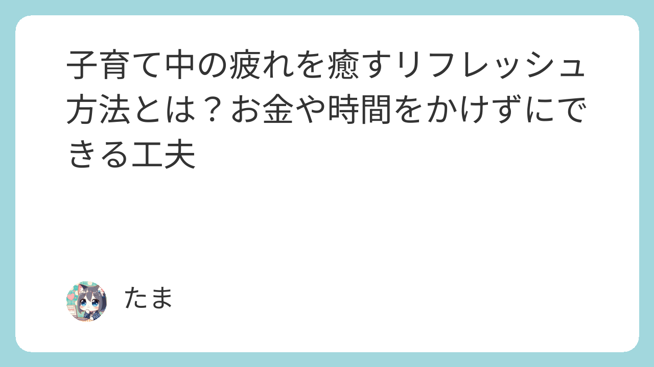 育児の疲れを感じたとき、必ずしも高価なサービスや遠出が必要なわけではありません。