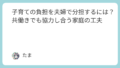 家事や育児の分担を話し合い、「できることを少しずつ分け合う」意識を持つと良いでしょう。