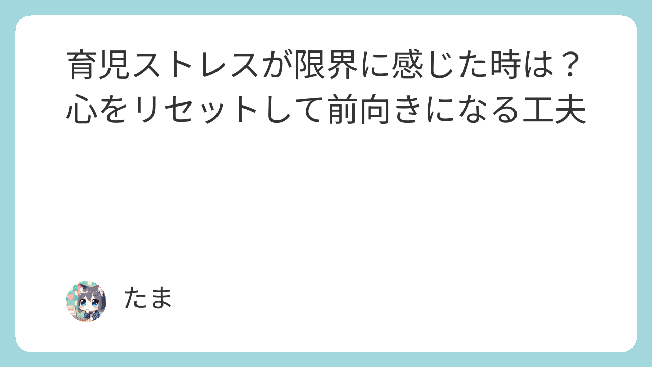 この記事では、育児ストレスが限界に感じた時に、心をリセットして前向きな気持ちを取り戻すための工夫を紹介します。