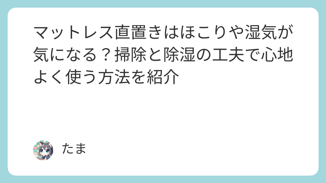 この記事では、直置きマットレスにほこりや湿気がたまりやすいといわれる理由を整理し、日常の掃除や湿気対策を中心に、取り入れやすい改善方法を紹介します。