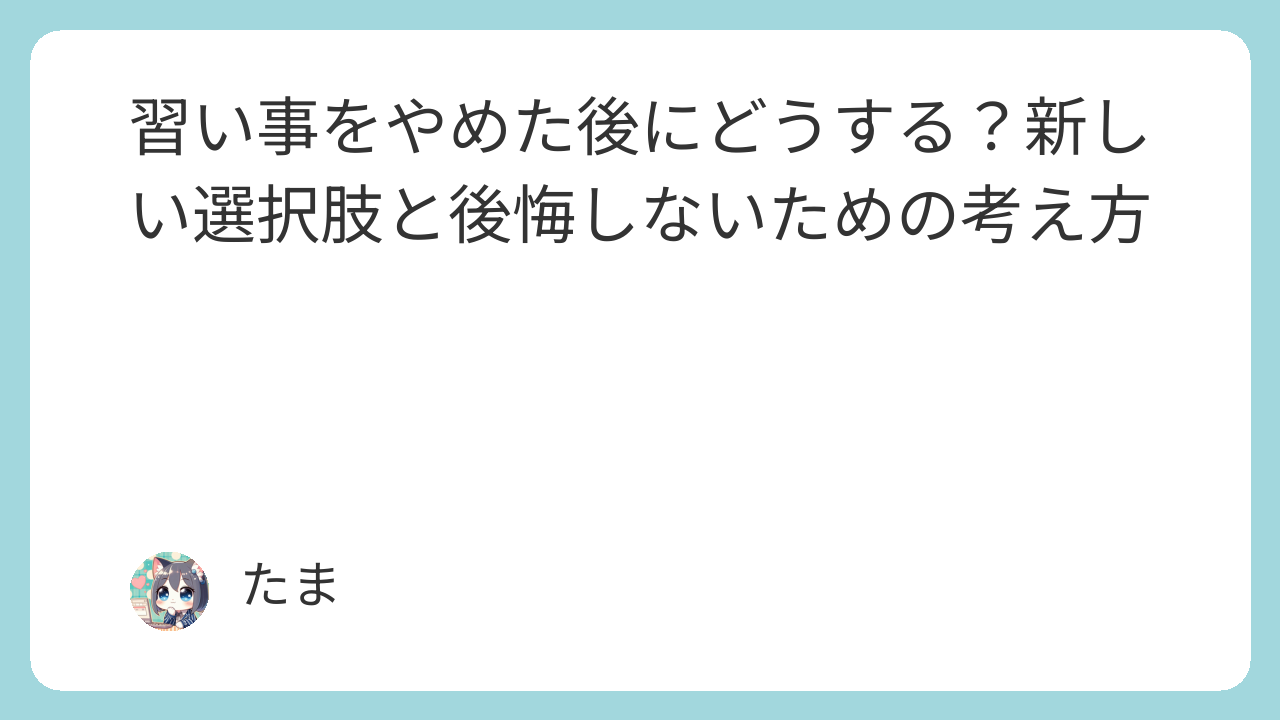 この記事では、習い事をやめた後に感じる心の変化や、後悔しないための考え方を整理します。