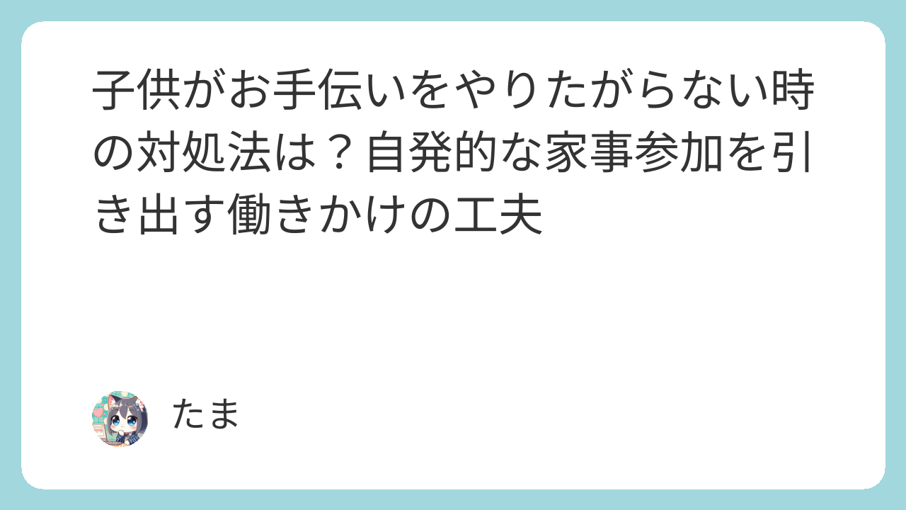この記事では、子供がお手伝いをやりたがらない理由を踏まえ、家庭の中でできる働きかけや習慣づくりの考え方をまとめています。