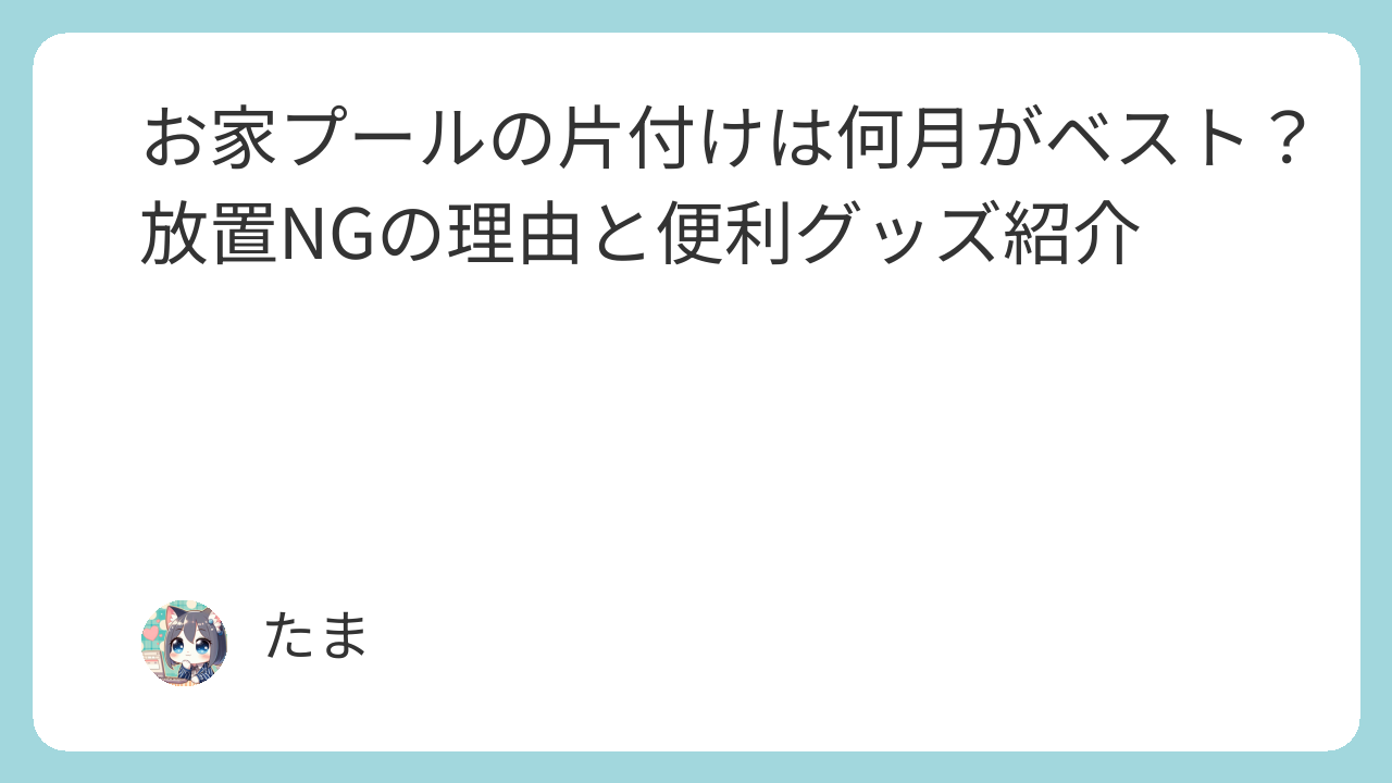 この記事では、お家プールの設置や片付けに適した時期や、出しっぱなしによるリスク、手間を軽減する便利グッズや工夫について具体的に紹介します。