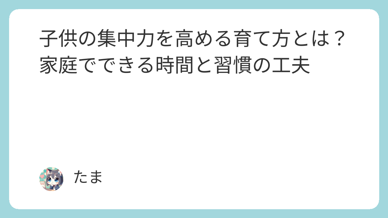 この記事では、家庭で無理なくできる「子供の集中力を高める育て方」と「時間の使い方の工夫」を紹介します。